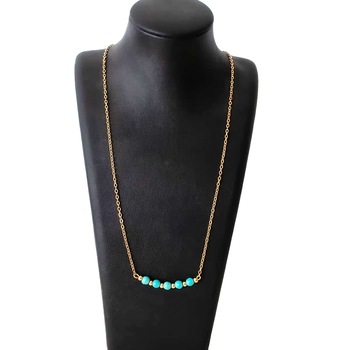 Kadın basit bohem tarzı kolye paslanmaz çelik kolye turkuaz boncuk günlük giyim topu şekli hediye ile altın kaplama