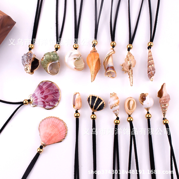 Yeni tasarım Bohemian doğal kabuklu deniz hayvanı kabuğu kolye yaz kolye ayarlanabilir uzunluk halat deniz kabuğu kolye
